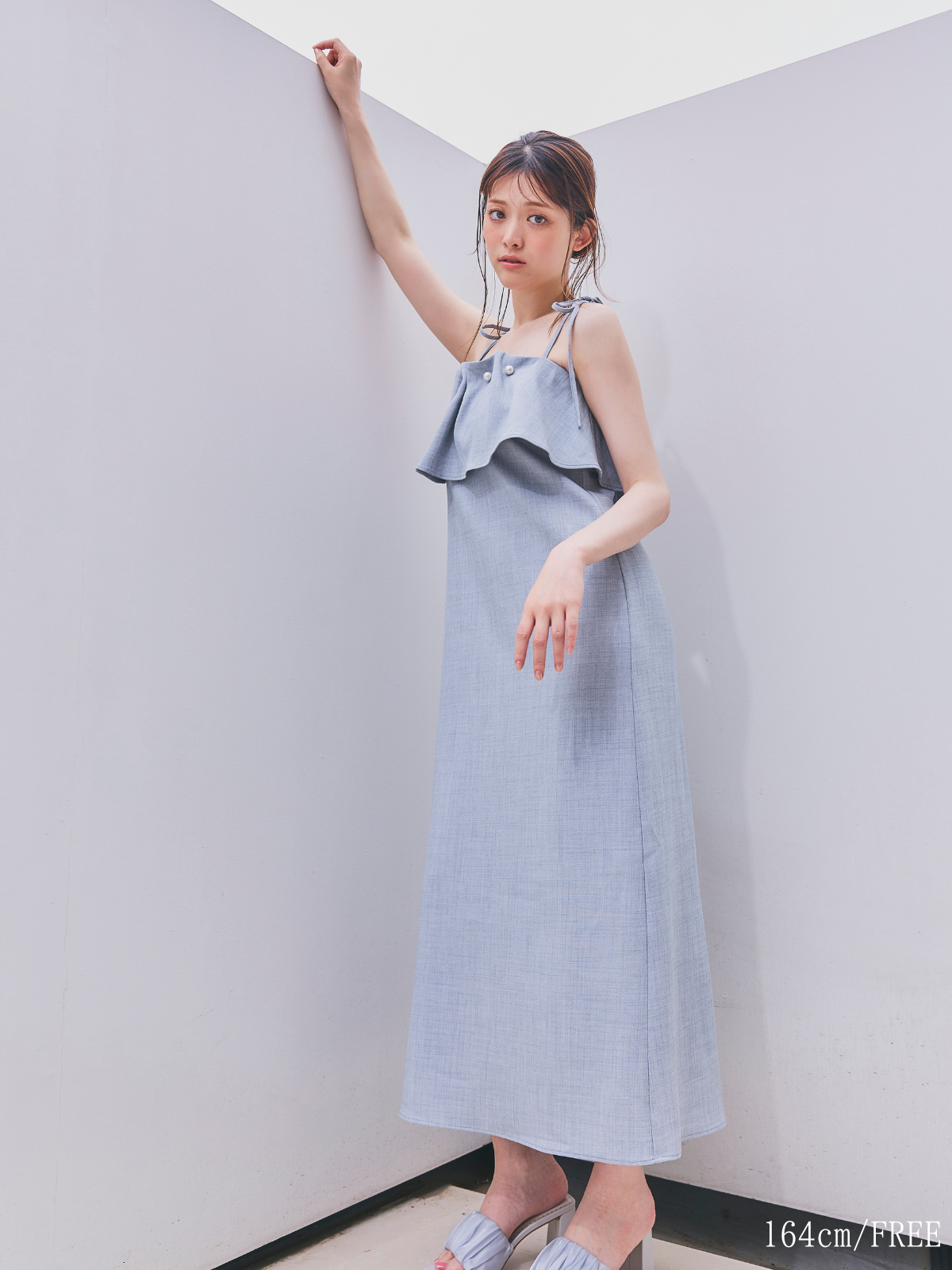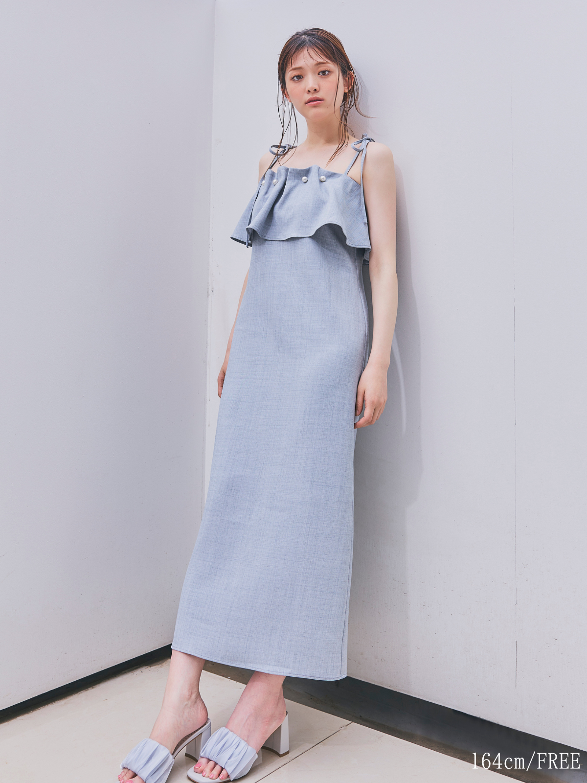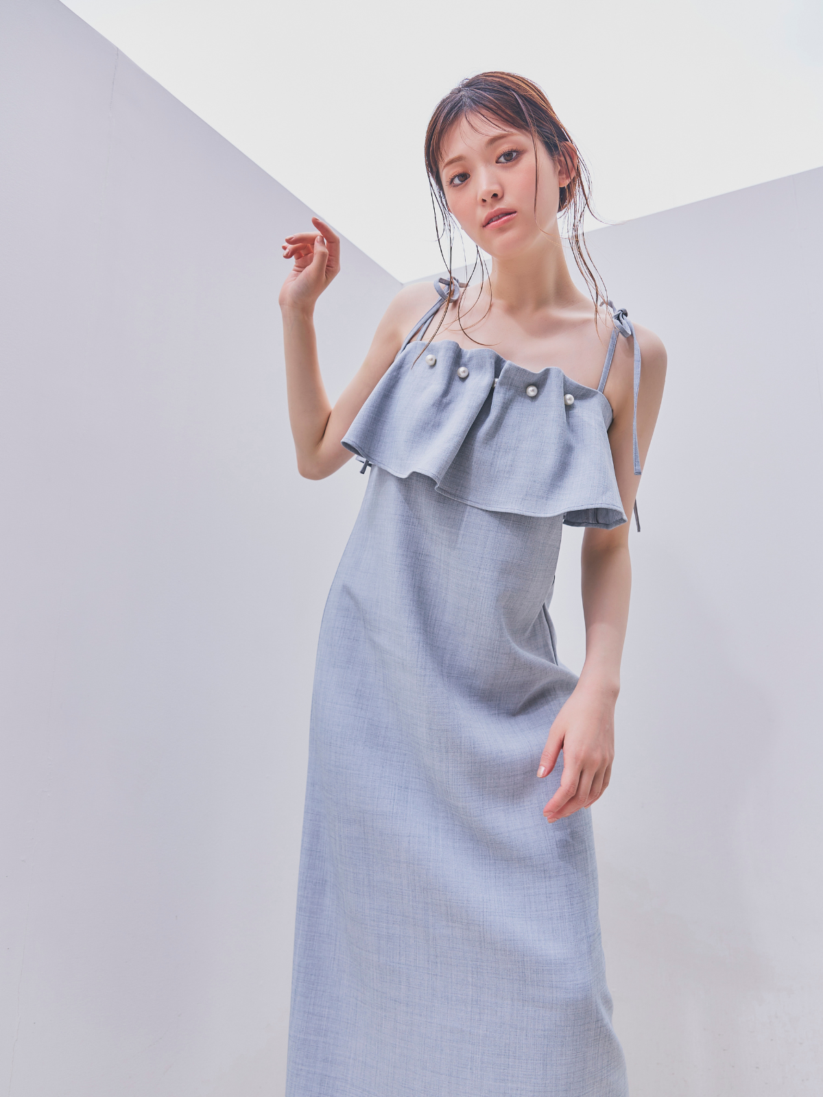 【GirlsAward着用】パールとフリルが華やかなキャミワンピース