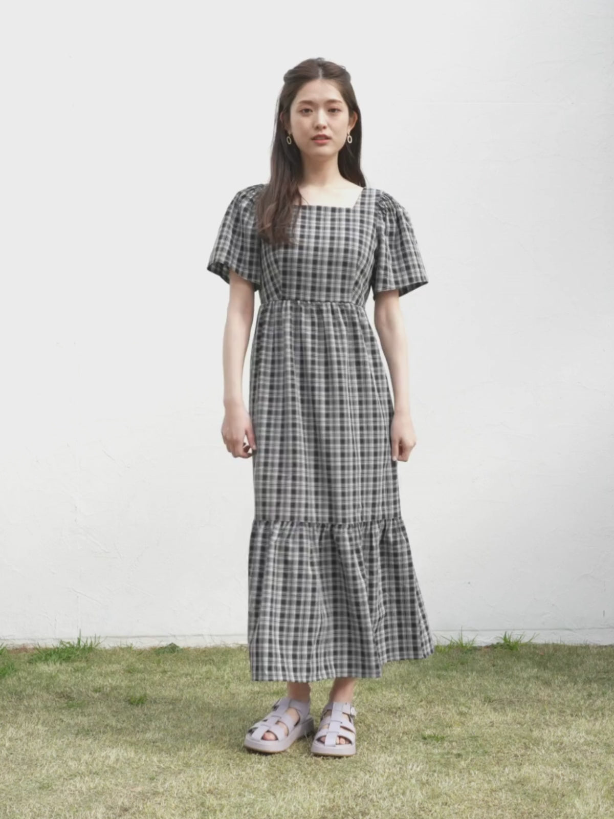 アフタヌーンティータイムをイメージした、女性らしいバックシャンワンピース。表情がある素材を使用した軽やかでレディな印象のドット柄と、大人っぽい大きめチェック柄のブラックドレス。