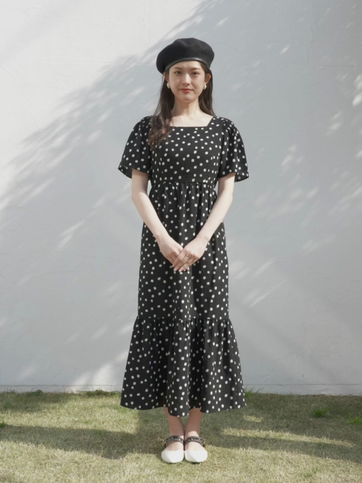 シャーリングで寄せたギャザースリーブとマーメイドシルエットでバランスの取れたスタイルが叶う魔法のドレスです。後ろ姿は、クロスディテールで抜け感をプラスし、高めに設定されたウエスト位置は脚長効果も。またスクエアネックで上品な印象で、ちょっとしたおでかけからオケージョンにもおすすめです。